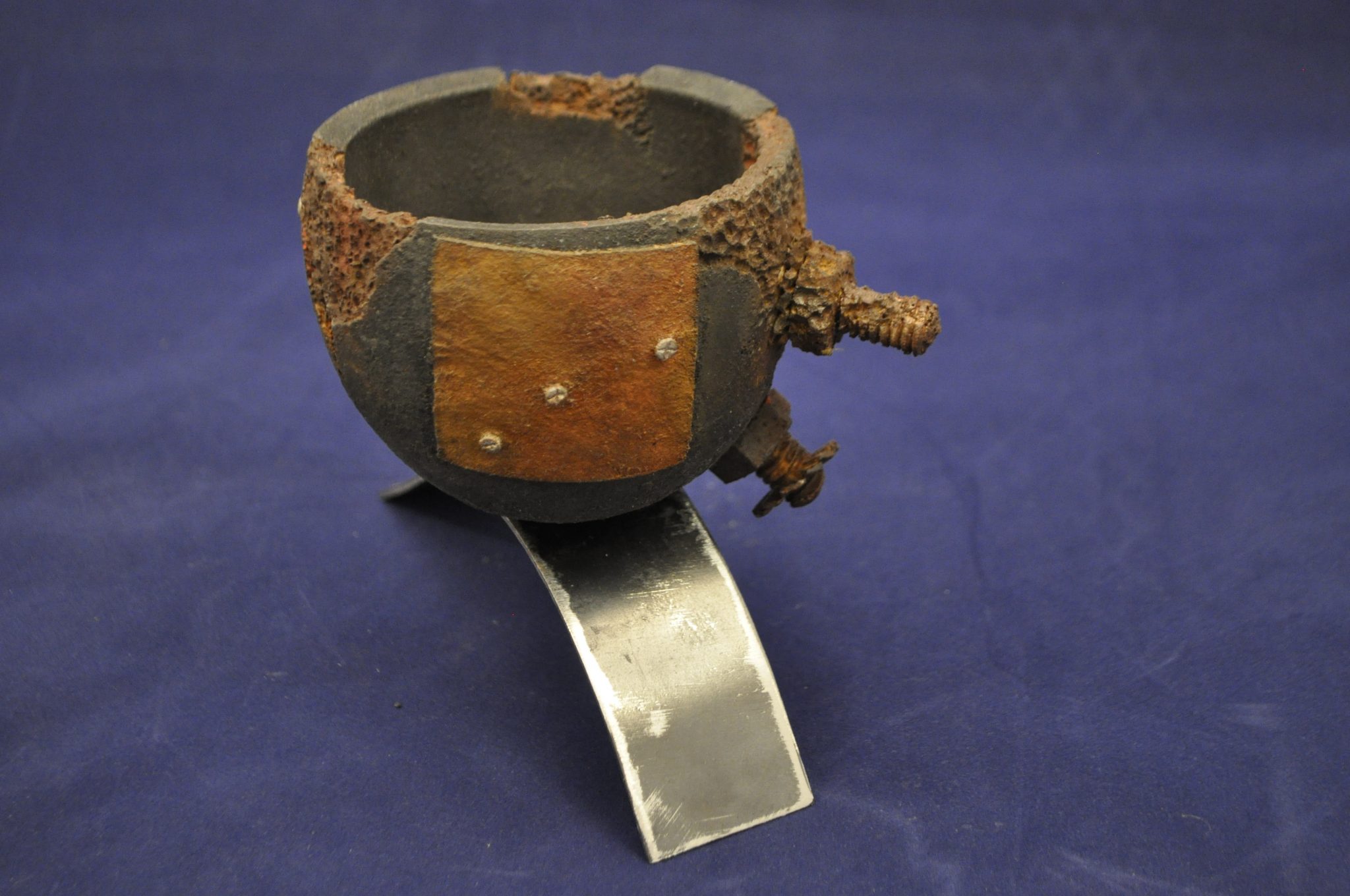 Bol en frêne, boulons, écrous et rondelles en hêtre, vis et rivets en buis, plaques en placage et Medium de France, coloration par pigments, Socle en acier